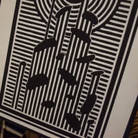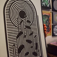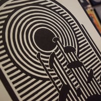 1 Color hand pulled Screen Print on 140lb. French Black Speckletone Paper. This print has two layers of white to make it extra vibrant!